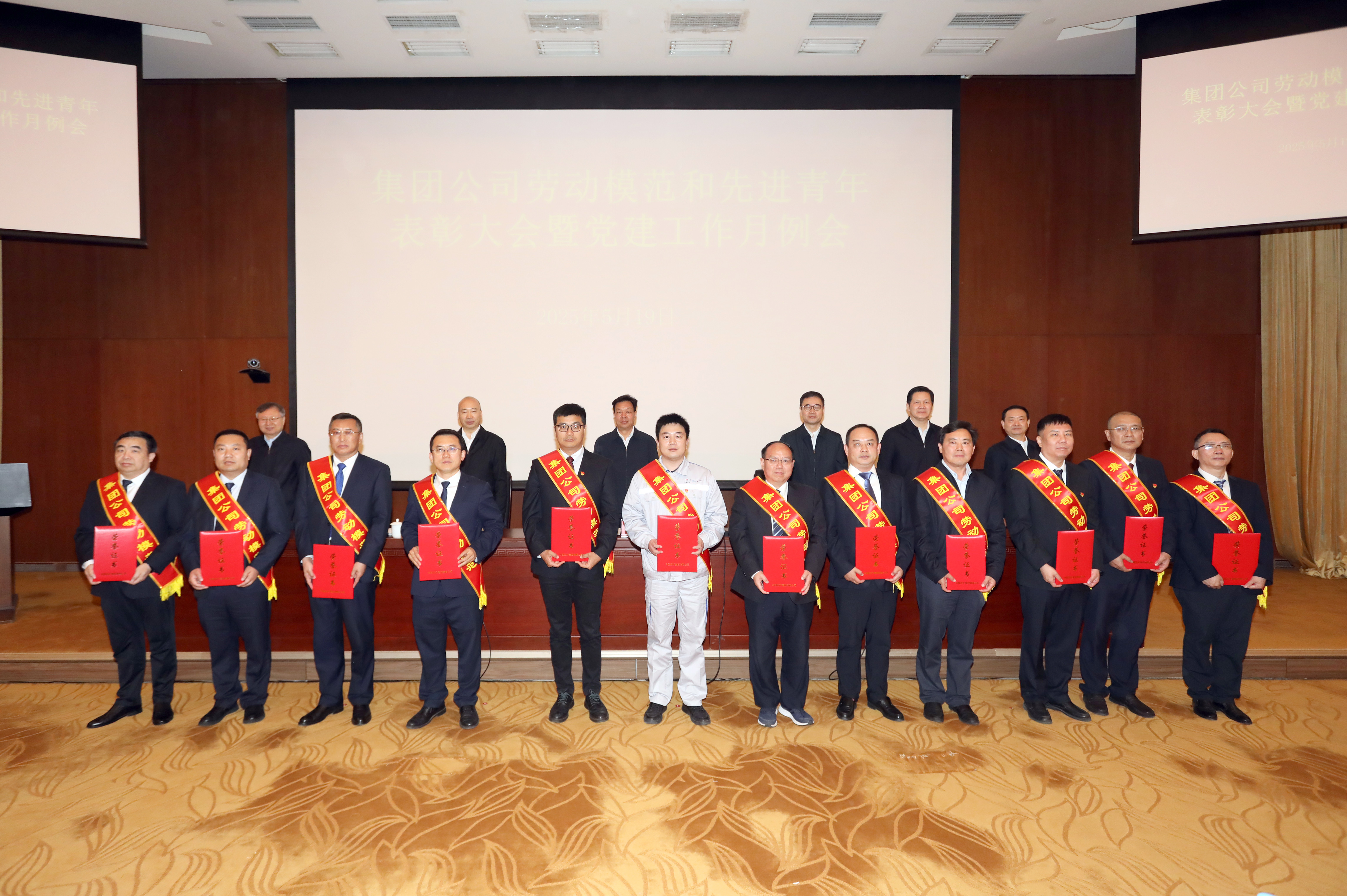 “中國五礦勞動模范”申曉林(左六)現(xiàn)場領(lǐng)獎