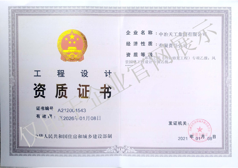工程设计资质证书-环境、风景园林专项乙级